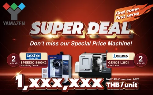 🎉 โปรโมชั่นพิเศษจาก Yamazen Thailand!พบกับเครื่องจักรคุณภาพจากญี่ปุ่นในราคาสุดคุ้ม: Brother SPEEDIO S500X2 จำนวนจำกัดเพียง 2 เครื่อง Okuma GENOS L250II...